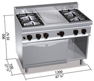 Berto’s Macros 700 High Power Standing 4 Gas Cooker with 1 Solid Top w/ Gas Oven GN2/1 G7T4P4F+FG