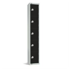 This black 5 door locker from Elite is designed with a sloping top which stops dust, dirt or debris building up on its surface, making it easy to clean and preserve. This feature also discourages your customers from leaving a bag or other valuables on top of the lockers, further enhancing security and reducing lost property at your venue. With a strong welded steel frame construction, reinforced doors and a hard wearing antibacterial coating which stops the spread of MRSA and e-coli, these hardy lockers are also very hygienic and are therefore perfectly suitable for changing areas within schools, universities, leisure centres, swimming pools and more. Product features * Dimensions 1800(H) x 300(W) x 450(D)mm * Material Powder Coated Steel * Weight 26kg * Epoxy Polyester Powder Coated Steel * Reinforced Doors with Black Casing * Anti-Bacterial Coating Effective Against MRSA & E-Coli * Pre-Drilled Nesting Holes * Stands Available in 3 Widths * Padlock Not Included
