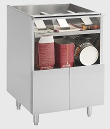 The Vizu Fast Serv 600 Single Wrap Bucket Module is a great solution for both storing and dispensing the large packaging chicken buckets. With the single bucket storage and dispense module you also have space for other packaging such as boxes and other options to the side and below in the ½ height cupboard. The dispensing mechanism helps to increase productivity and workflow by dispensing a single bucket as a time so no more faffing! This module is also available as double bucket type for high volume restaurants. * 600 wide module * Single bucket storage and dispenser with cupboard below , * Width: 600mm * Depth: 550mm * Height: 890mm